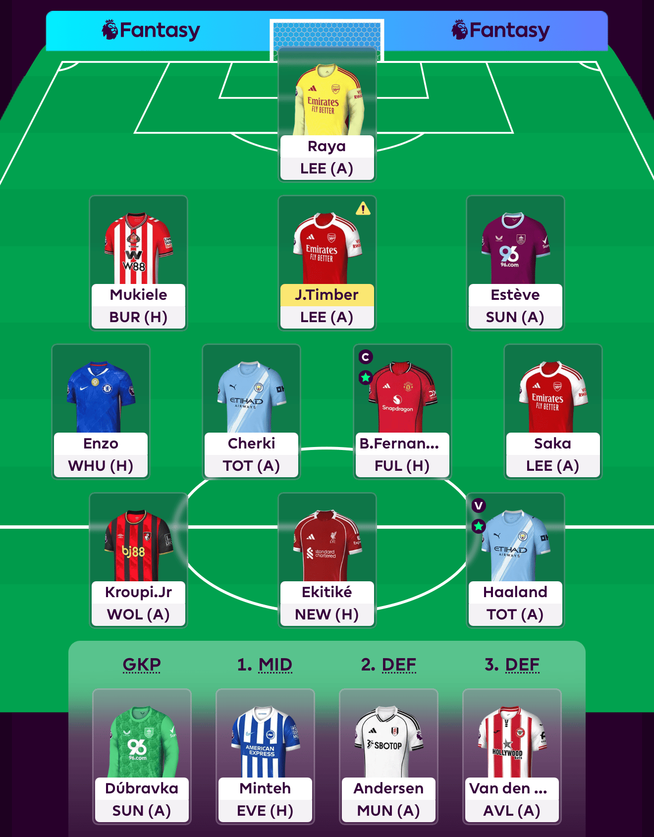 Bruno Fernandes gets the armband. As discussed in our captaincy section, this is because the Prof needs to start playing more aggressively to make up ground. He’s willing to accept some risk for the potential upside of a Fernandes captaincy haul.
