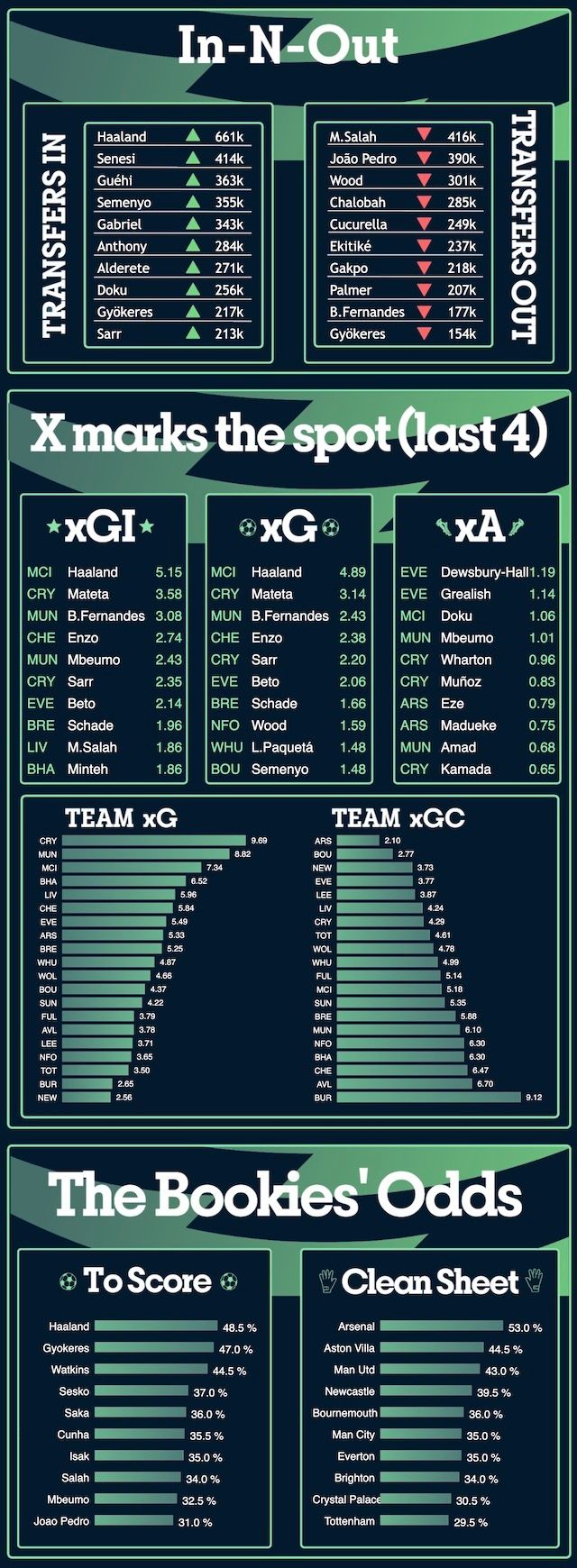 Assuming we don’t get a Double Gameweek this side of Christmas (it’s unlikely), the best thing you can do is pick an in-form player against an out-of-form team. That was Erling Haaland last week against Burnley, but it could be a different player against a different opponent. Stay flexible, don’t rush it.