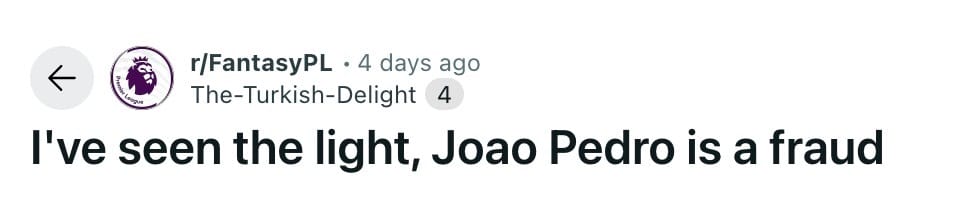 The absence of Cole Palmer, their Gameweek 7 fixture vs Liverpool and existential threats to Chelsea’s management have all combined to mean one thing: lots of managers are now refusing to vote for Pedro.